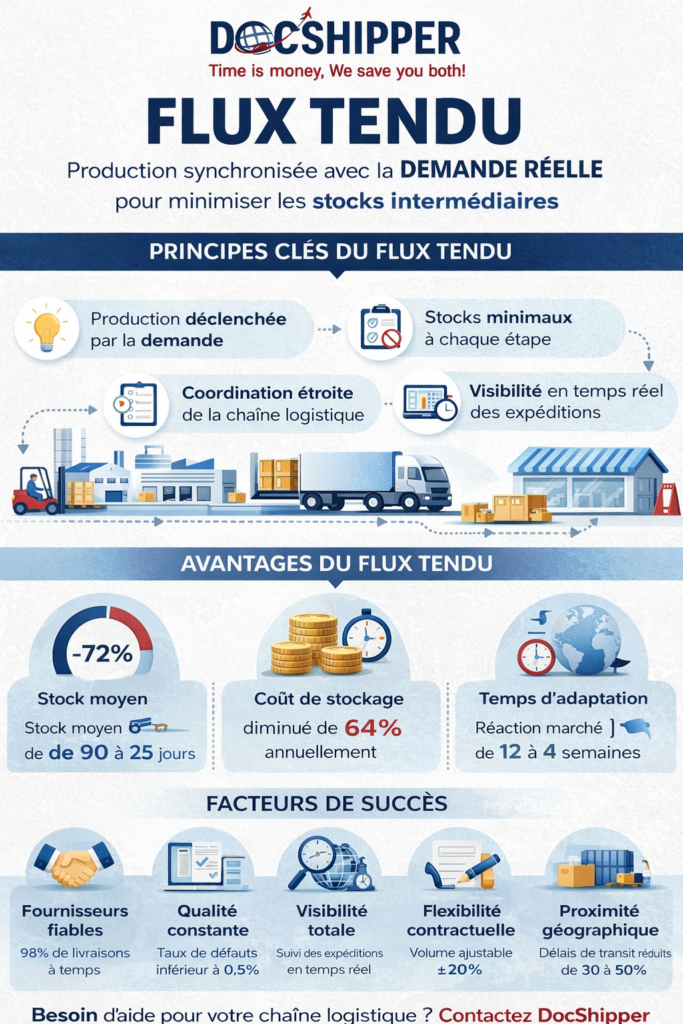 Besoin d’optimiser votre chaîne logistique en flux tendu ? Contactez DocShipper pour un accompagnement personnalisé sur vos opérations internationales.