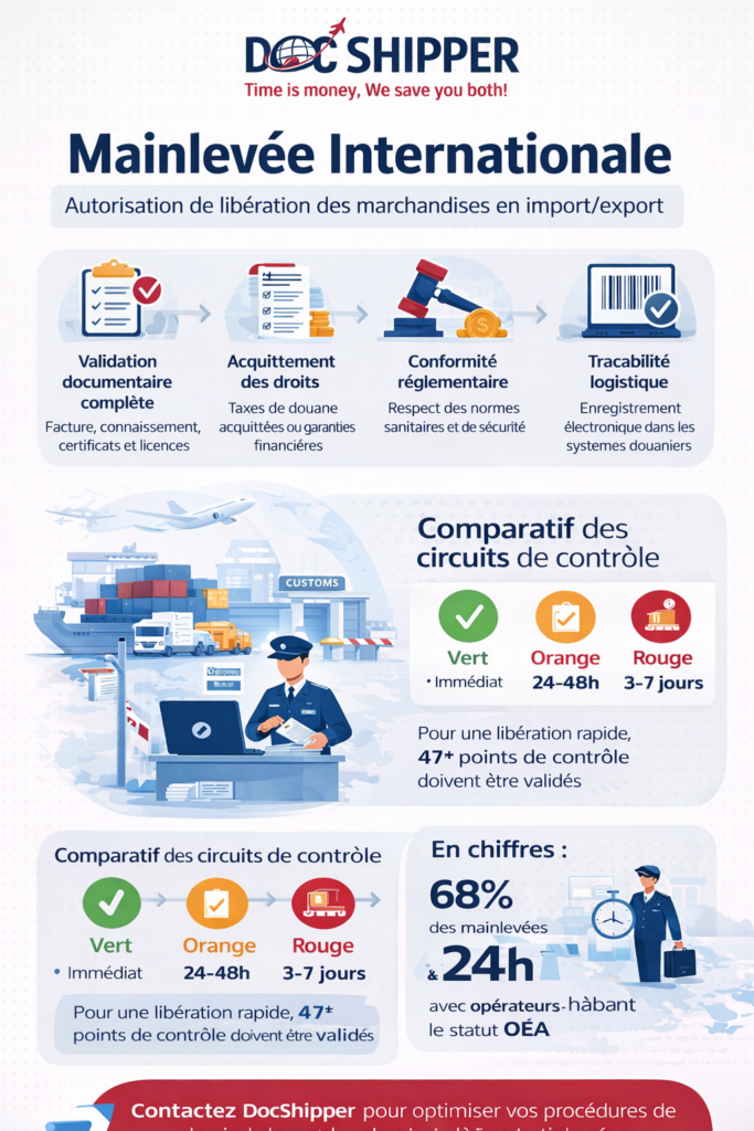 Besoin d’un accompagnement sur vos procédures de mainlevée ou d’une expertise en dédouanement international ? Contactez DocShipper pour bénéficier d’un audit gratuit de vos processus douaniers et découvrir comment optimiser vos délais de mise à disposition.