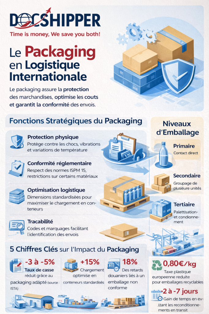 Le packaging est un levier stratégique en logistique internationale. Il protège les marchandises, optimise les coûts et garantit la conformité réglementaire.