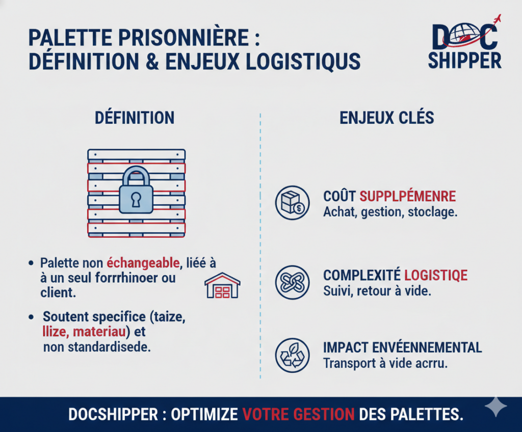 Sur le plan juridique, la palette prisonnière échappe aux réglementations de consignation puisqu’elle n’entre jamais dans un circuit d’échange. Selon les directives européennes sur les emballages et déchets d’emballages (Directive 94/62/CE), seuls les supports destinés à la circulation commerciale sont soumis à déclaration. Chez DocShipper, nous conseillons systématiquement ce système aux clients gérant des entrepôts de plus de 5000 m², où la gestion des palettes d’échange devient rapidement ingérable.
