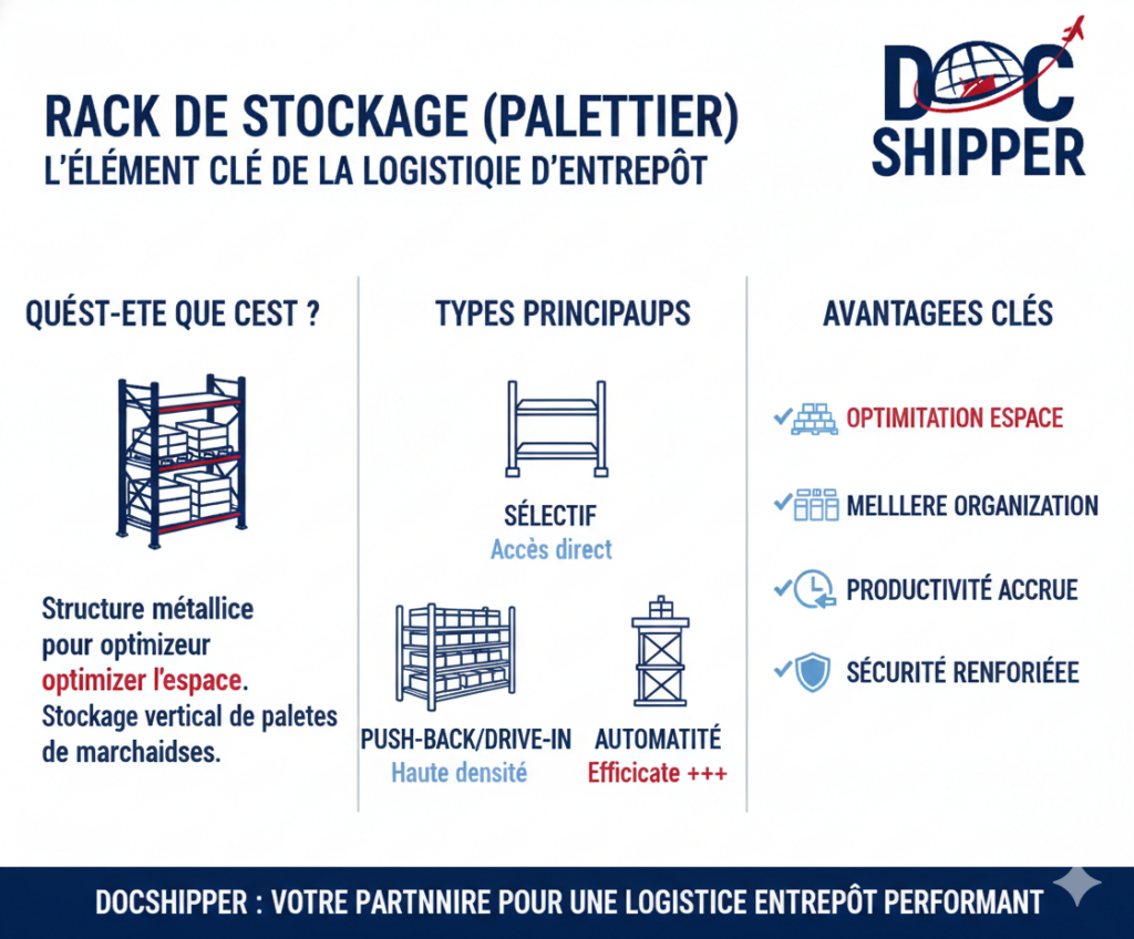 Chez DocShipper, nous auditons systématiquement les infrastructures de stockage de nos partenaires pour vérifier la conformité des palettiers aux normes européennes, évitant ainsi tout risque de non-conformité lors des inspections douanières ou des audits clients. Pour plus d’informations sur les réglementations applicables, consultez le Code du travail français.