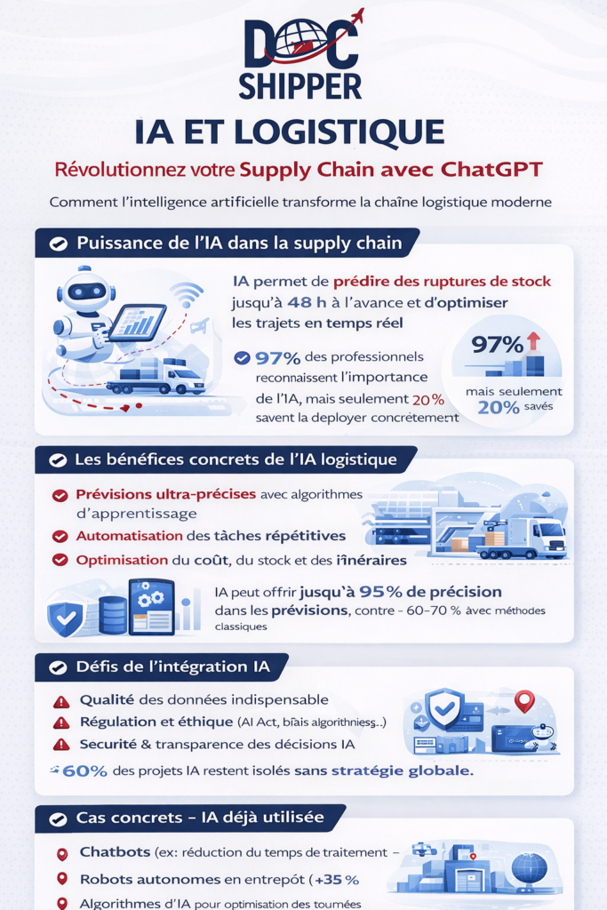 - Audit automatique des factures de fret pour détecter les surcoûts et erreurs de facturation