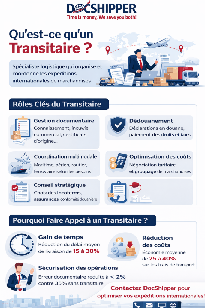📞 Devis Gratuit PersonnaliséFAQ | Transitaire : Définition, Rôle & Exemples Concrets en Logistique Internationale