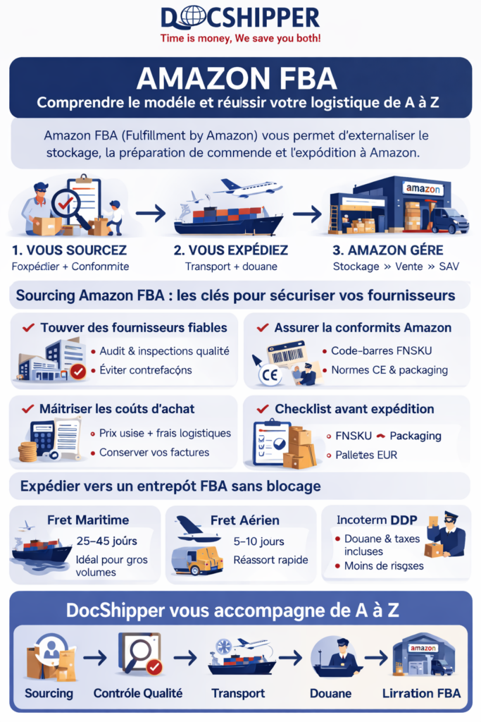 Mais n’oubliez pas : si, à n’importe quelle étape, vous vous sentez perdu, que ce soit pour trouver un fournisseur, valider la qualité, gérer le transport international ou les formalités douanières, DocShipper peut tout prendre en charge pour vous !Amazon FBA, comment ça fonctionne et pourquoi est-ce une vraie opportunité pour vous ?