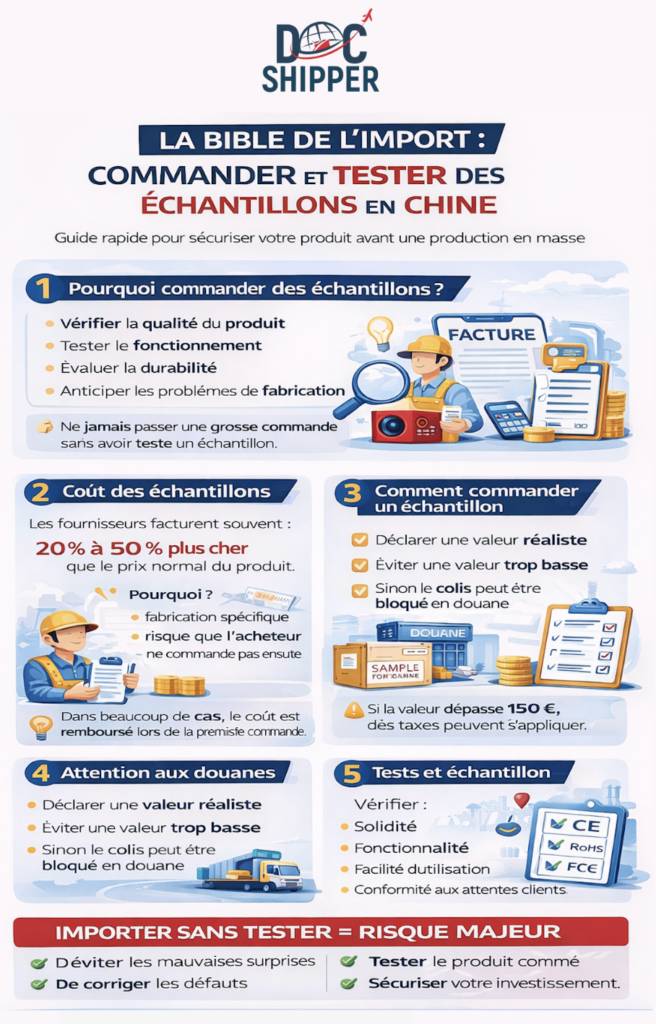 We’ve vu un importateur perdre trois semaines parce que ses Echantillons chine étaient bloqués en douane pour une simple erreur de valeur déclarée, 0,50 USD au lieu de 5 USD réels, et les autorités ont immédiatement suspecté une sous-évaluation. You’ll notice fast que même pour des échantillons produit, les règles douanières s’appliquent presque comme pour une marchandise commerciale.